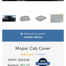 NEW - Mopar OEM 20-23 Jeep Gladiator (JT) Black Water Resistant Cab Cover$170San Diego, CA