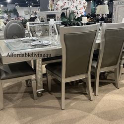 7 Pc Champagne Mirrored Dining Table Set Brand New In Box $1,599Murrieta, CA