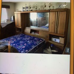 Used Bed Frame With Cabinets, Drawers, Big Mirror With Lights$350Santee, CA