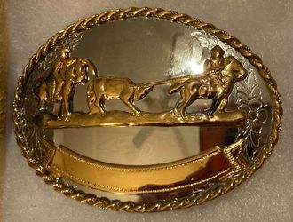 Vintage Metal Belt Buckle, German Silver and Brass, Cow Roping, Wrestling, Cowboy, Nice Design, 3 1/4" x 2 1/4", Heavy Duty, Quality, Thick Metal, Mad$65Lakeside, CA