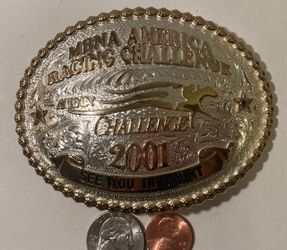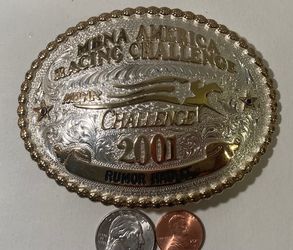 Vintage 2001 Metal Belt Buckle, Silver and Brass, Horse Racing, Montana Silversmiths, MBNA America Racing Challenge, Rumor Had It, Nice Western Design$130Lakeside, CA