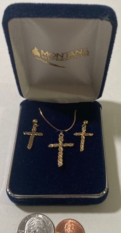 Vintage Metal Montana Silversmiths Silver Cross, Crucifix, Religious, Gothic, Necklace and Matching Earring Set, Beautiful Design, Quality, Fashion, A$85Lakeside, CA