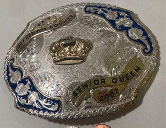 Nice 2007 Metal Belt Buckle, Senior Queen, Jefferson County Fair, Silver and Brass, Montana Silversmiths, Nice Western Design, 4 3/4" x 3 3/4", Heavy $150Lakeside, CA