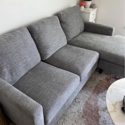 Light Gray Stark Modern 80” Sectional Sofa with Reversible Chaise by Living Spaces$395San Diego, CA