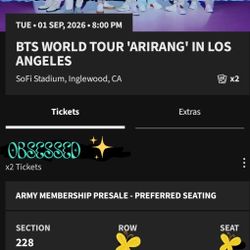 BTS WORLD TOUR TICKETS SOFI STADIUM SEPT 1$900Ontario, CA
