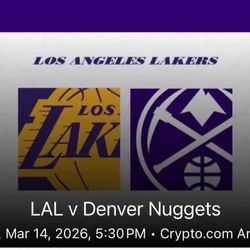 11th Row From The Floor, Below Face-Value, Lakers VS Nuggets - Mar.14th$1Los Angeles, CA