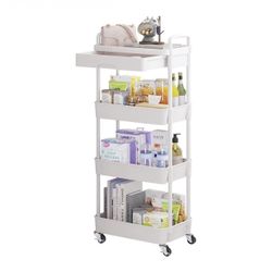 4-Tier Rolling Utility Cart w/ Drawer. Plastic shelves and metal structure in White.$30Chino Hills, CA