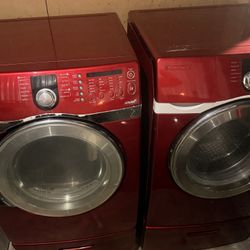 Samsung Front Load Washer & GAS Dryer Set + Pedestals (Red) – Works Great$750Santa Ana, CA