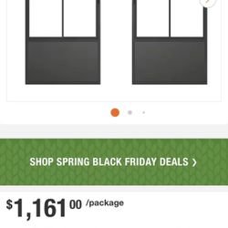 CALHOME 74 in. x 84 in. Clear Glass Black Steel Frame Interior Double Sliding Barn Door with Hardware Kit and Door Handle $450El Monte, CA