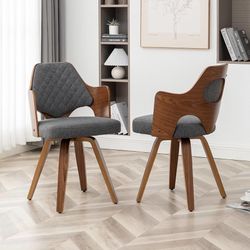 Walnut Dining Chairs Set of 2,Darkgray Kitchen Chair Fabric,Wooden Mid Century Modern Dining Chairs,Swivel Bentwood Chair with Arms for Dining Room$65Ontario, CA