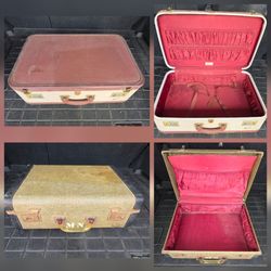 Set of 2 Vintage MCM Suitcases - Skyway Two-Tone & Tweed with Amber Lucite Handle - Red Interiors$99Yorba Linda, CA