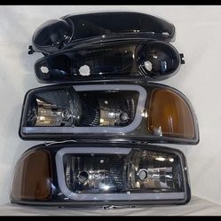 00-06 GMC Denali Black / Chrome Housing And Clear / Smoke With Amber LED 4PCs Replacement Pair Headlights Headlamps Calaveras De Enfrente Farros $120Los Angeles, CA
