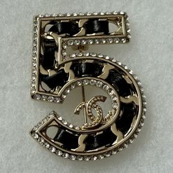 CC No 5 Logo Black Leather Crystal Chain Gold Brooches $55Los Angeles, CA