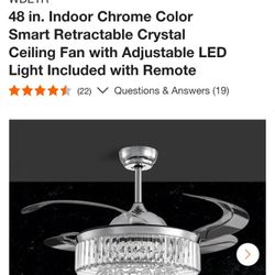 48 in. Indoor Chrome Color Smart Retractable Crystal Ceiling Fan with Adjustable LED Light Included with Remote$80Los Angeles, CA