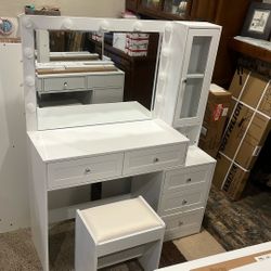 Large Makeup Vanity with Lighted Mirror, 2 Drawers, Cabinet & Power Outlet,White$140Ontario, CA