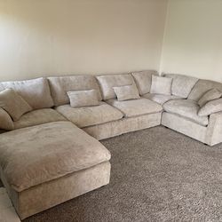 New! Comfy Plush Sectional Couch, Sectional And Ottoman, Grey Sofa, Gray Couch, Corduroy Sectional, L-Shaped Sofa Set, Beige Cream Ivory White Couch$499Chino, CA
