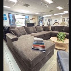 NEW Designer Choice Modern Sectional Sofa and BIG Curved Chaise Lounge Set Ashley Style Dark Grey Fabric Discount Furniture BIG Couch Clearance SALE$599Chino, CA