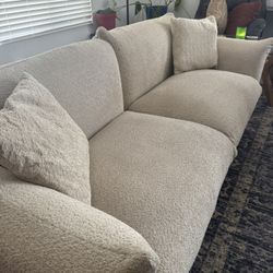 Living Spaces Paloma White Beige Sofa 98” FLOOR MODEL , Free Delivery ✅ Living Spaces Couch, Cloud Clouch, Modern Cloud Couch $775Norwalk, CA