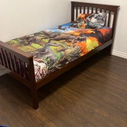 Dark Wood Twin Bed And Mattress $80Los Angeles, CA