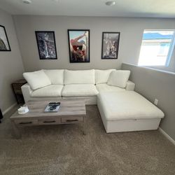 New Ivory White Beige Sectional Sofa And Ottoman Set Ashley Style Designer Couch Furniture Warehouse Discount Sale Soft Plush Fabric Modern Furniture$499Chino, CA