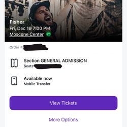 2 Fisher Tickets$160El Monte, CA