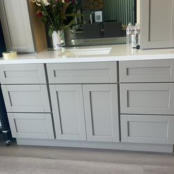 60-inch gray single-sink vanity, solid wood bathroom cabinet, includes countertop and sink.$658El Monte, CA