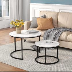 Nesting Round Coffee Table Set of 2 with Marble Top and Metal Frame, Black$50Pasadena, CA