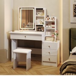 Vanity Desk with Mirror and Lights, Makeup Vanity with 3 Adjustable Lighting Modes, Small Vanity Desk with Sliding Mirror, 4 Drawers, 7 Shelves, Vanit$115Arcadia, CA