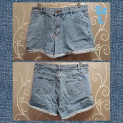 WOMENS DISTRESSED DENIM SHORT SHORTS SIZE L