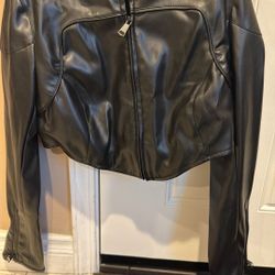 CROPPED FAUX LEATHER MOTO JACKET, $0 Free Pick Up $0Burbank, CA