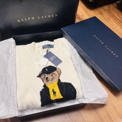 New Polo Ralph Lauren Bear Cotton Crewneck Sweater size L clubhouse Cream multi Color $150Anaheim, CA