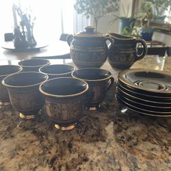 Vintage Greek Black & 24K Gold Coffee or Tea Set - 14 $150San Pedro, CA