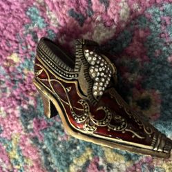 Red Gold Silver Enamel Victorian Shoe Trinket Box w/ Crystal Bow$10Los Angeles, CA