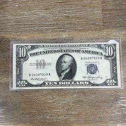 $10 Old Bill Silver Certificate Blue Seal Series 1953 Rarer $85Los Angeles, CA