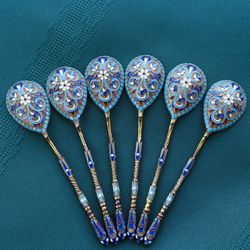 1890 Antique Russian Imperial Silver Enamel Tea Spoons Set Of 6 Marked 84$999West Hollywood, CA