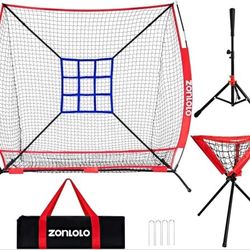 6x6ft Portable Baseball & Softball Net for Hitting,Pitching, Batting and Throwing, with Sturdy Bow Frame,Batting Tee, Ball Caddy and Strike Zone$45Carson, CA