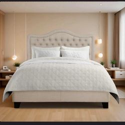 QUEEN Bed Frame - Luxurious Headboard, Elegant Platform Design, needs a box spring, Beige B-25$149Costa Mesa, CA