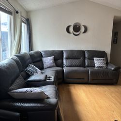 Black Leather Reclining L Shaped Couch with Cup Holder And Compartment $400Pomona, CA