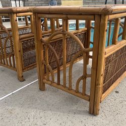 Pair of Vintage Mid Century Rattan Bamboo Glass-Top End Tables, Palm Beach Regency$375West Covina, CA