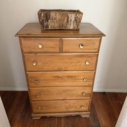 Genuine Solid Wood, 5 Drawers Dresser, Natural Wood Color, Made by Broyhill, Dimensions 36" W. x 48" H. x 18" D., Retired, Wood Knobs, Good Condition.$150Pico Rivera, CA