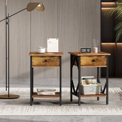Nightstand Set of 2, Industrial End Tables with Drawer and Shelf$50Chino, CA