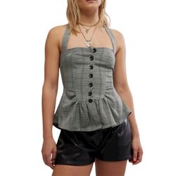 Free People Halter Peplum Top - Black And Gray Plaid Size XL$30Anaheim, CA