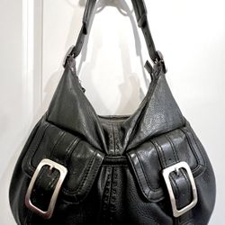 COLE HAAN Hobo Black Soft Leather Buckle Front Pockets Adjustable Strap Top Zip Shoulder Bag Purse$150Los Angeles, CA