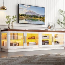 70" LED TV Stand for TVs up to 85", Wood Farmhouse TV Stand with Storage Cabinet & Glass Door, Modern TV Console Media Cabinet for Living Room, Bedroo$100Upland, CA
