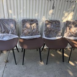 Dining Chairs Set of 4 Brown Faux Leather, Comfortable Mid Century Modern Chair with Metal Leg, Upholstered Big Side Chair for Kitchen Dining Room,Bro$100El Monte, CA