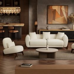 2PCS Sofa & Accent Chair Set, Upholstered Lamb Fabric Sofa Set with Throw Pillows, Pet-Friendly Curved Couch & Armless Chair for Living Room,White$799Rancho Cucamonga, CA
