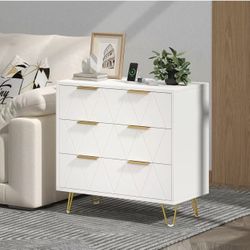 TVU 3 Drawer Wide Nightstand with Charging Station, 27.6 Inch Wood Nightstand, White Dresser with Storage Drawers, Bedside Table with Metal Handle & L$65Pomona, CA