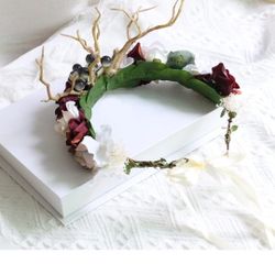 Deer Flower Crown Women Flower Headband Hair Wreath Floral Headpiece Halo Boho with Ribbon Wedding Party Prom Photos$4Riverside, CA