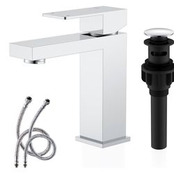 KENES Grifo de baño cromado Grifo de lavabo de baño de una sola manija Grifo de tocador con desagüe emergente y líneas de suministro de agua LJ-9031$25Riverside, CA