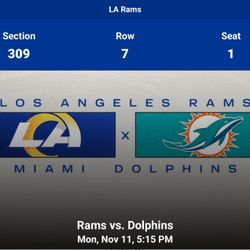 For Sale 2 Tickets For Rams VS Dolphins MONDAY NIGHT FOOTBALL $525Corona, CA